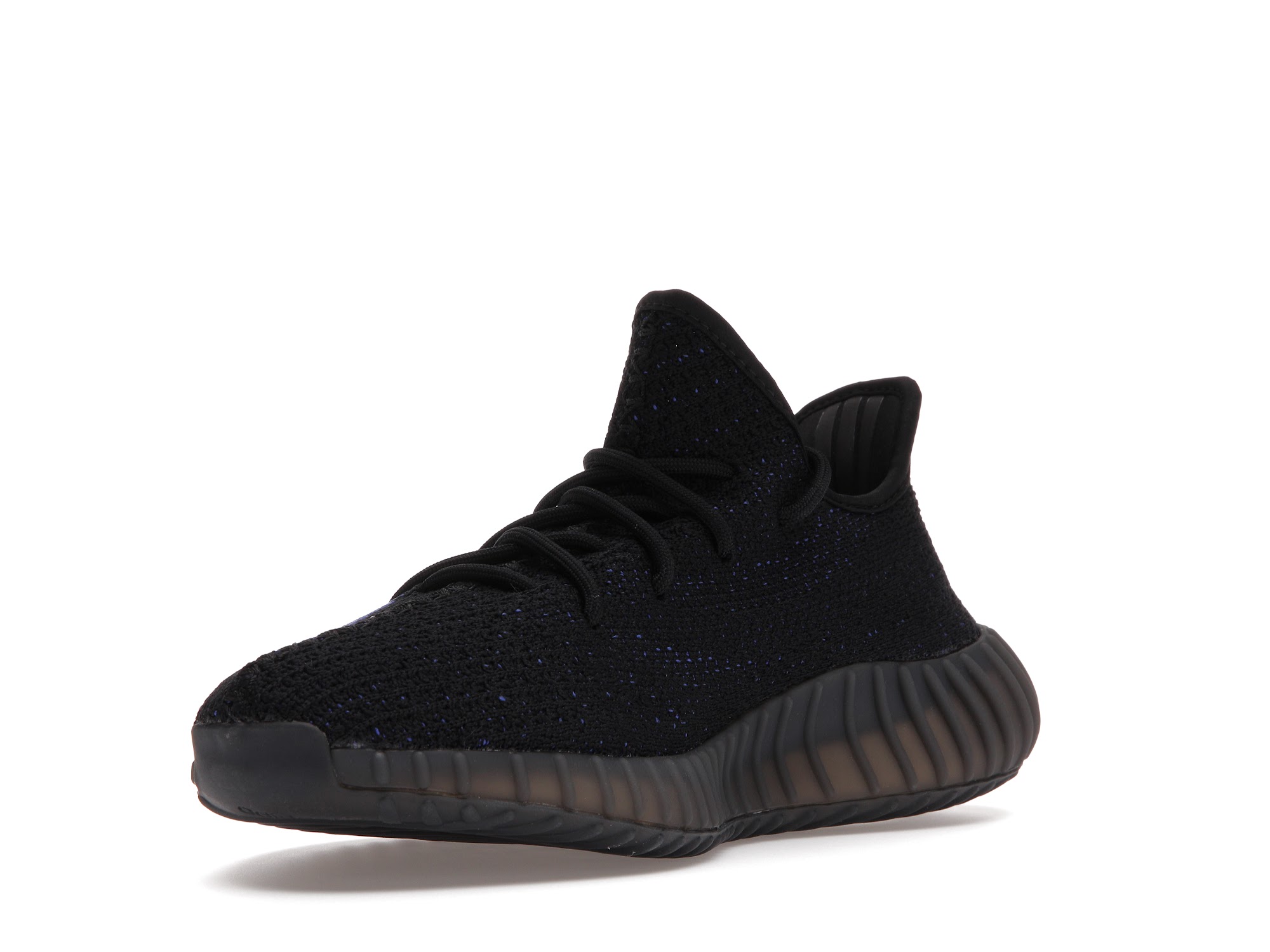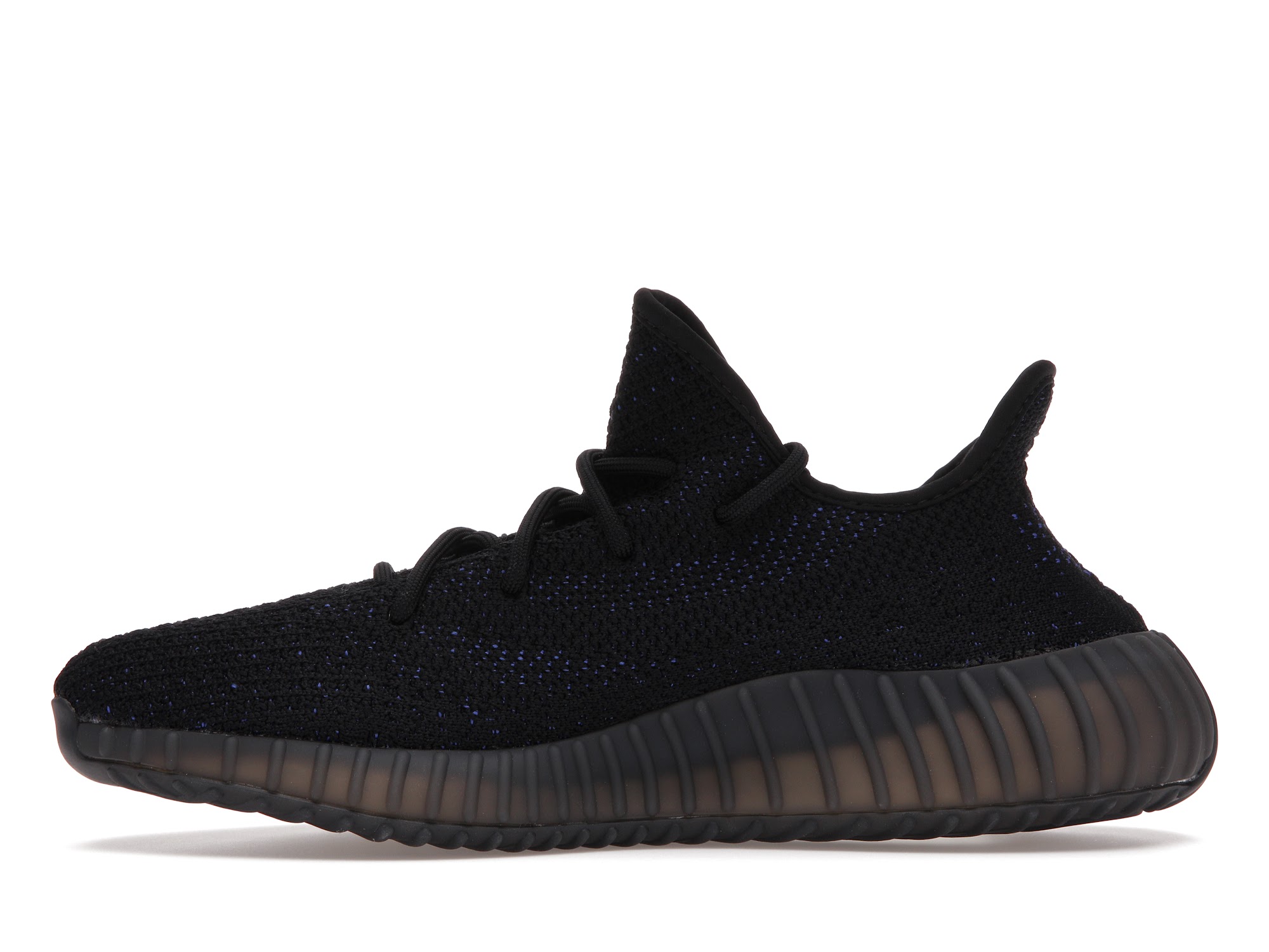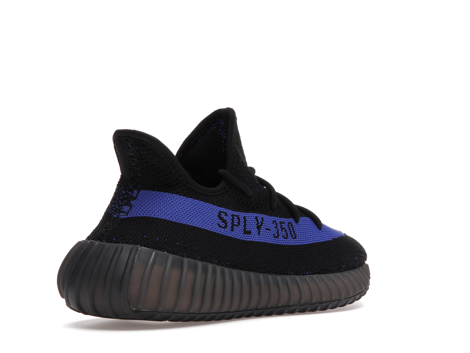 The adidas Yeezy 350 V2 Dazzling Blue is reminiscent of the 2016 Yeezy 350 V2 Black Friday Pack. Instead of featuring a marbled pattern and sheer side stripe, it opts for a solid black Primeknit upper and blue side stripe with “SPLY-350” text. At the base, a muted Boost sole offers comfort and support.