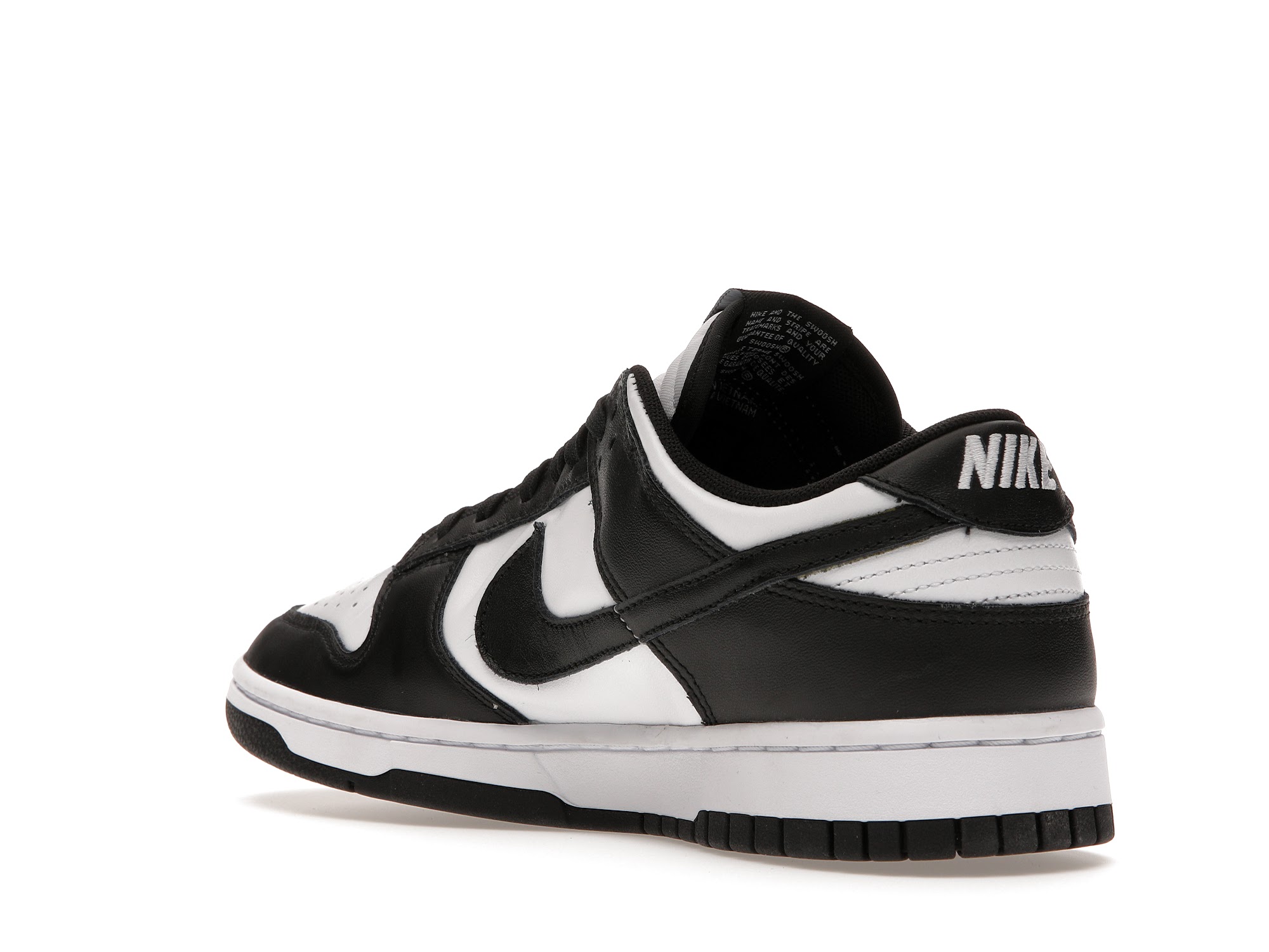 The upper Nike Dunk Low Retro White Black is constructed of white leather with black leather overlays and Swooshes. Classic Nike branding is featured on the nylon tongue, nodding to traditional Dunk design elements. A white midsole and black outsole complete the design.